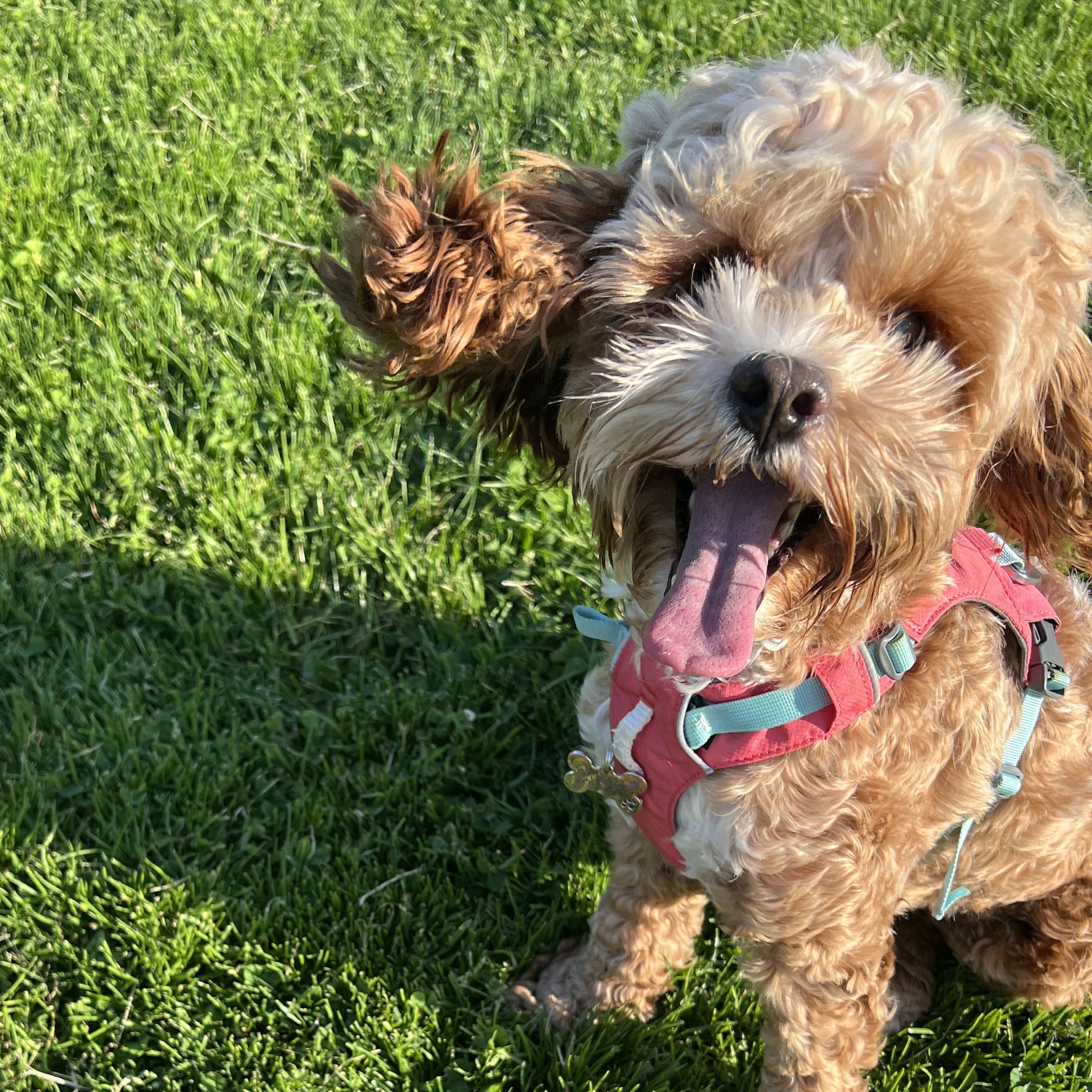 Pep is happiest on sunny days and loves racing through the snow in winter. Water, however, isn’t his favorite. He’ll skip swimming and dodge baths whenever he can! He’s working on getting more comfortable with it. His favorite places to explore are Cat Rock Park in Weston and Larz Anderson Park in Brookline, where he can zoom around, chase balls, and make new furry friends.